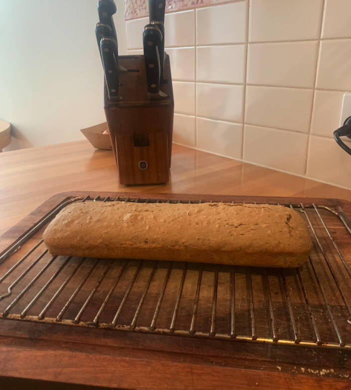 Preheat the oven to 180C (160C fan-forced). Grease a medium/small loaf pan and line with baking paper.